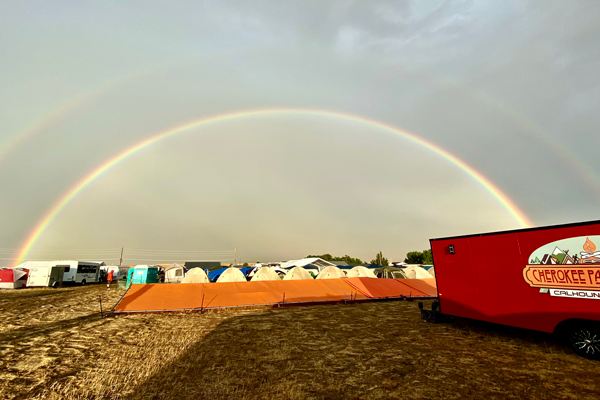 To our relief, when we returned to our campsite, cheers erupted—none of our tents had been destroyed! Immediately following the storm, we were awestruck to see a stunning double rainbow arching over our campsite. I was then reminded to “Believe the Promise.” My mumbling and groaning turned into celebration and praise for His protection.